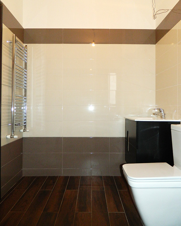 - zidărie interioară şi tavane tencuite-gletuite şi primul strat de vopsea lavabilă albă aplicat,